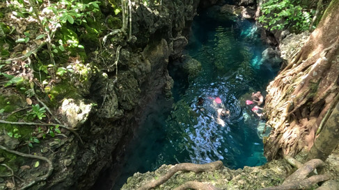 This is an amazing hidden gem on the island that is definitely not to be missed. Goa Halo Tabung is an aquatic cave with stunning blue water, surrounded by wild jungle and rock walls. The water is crystal clear and cold, and you can see all the way down to the bottom at around 20 meters depth. If you're adventurous, there is a spot to jump from the rocks at a height of around 5 meters. This was a job for Danny - not me! There is a pathway between the pools either over, or under the rocks. Neither of us are good enough free divers to attempt the underwater route but it wasn't necessary to see all the cave had to offer. We spent some time snorkelling here and admiring the surroundings. There is a bit of sharp rock to traverse on the way in so keep your shoes on until you're ready to get in. For foreigners there is a 50,000Rp entry fee.